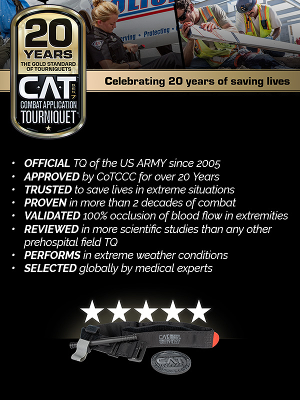 NAR’s 20 Year C-A-T® Tourniquet Anniversary Sale starts at 8am EDT on Monday, 24th, 2025, and ends at 11:59pm EDT on Thursday, November 27th, 2025. Coupon code CAT20 applies to U.S. retail purchases only. While supplies last. Free ground shipping within the contiguous United States for non-freight U.S. retail purchases over $100.