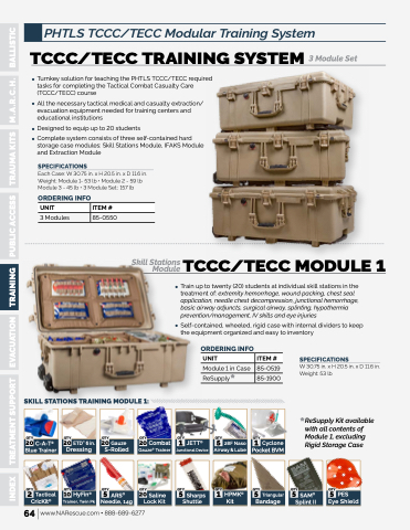 •Turnkey solution for teaching the PHTLS TCCC/TECC required tasks for completing the Tactical Combat Casualty Care (TCCC/TECC) course