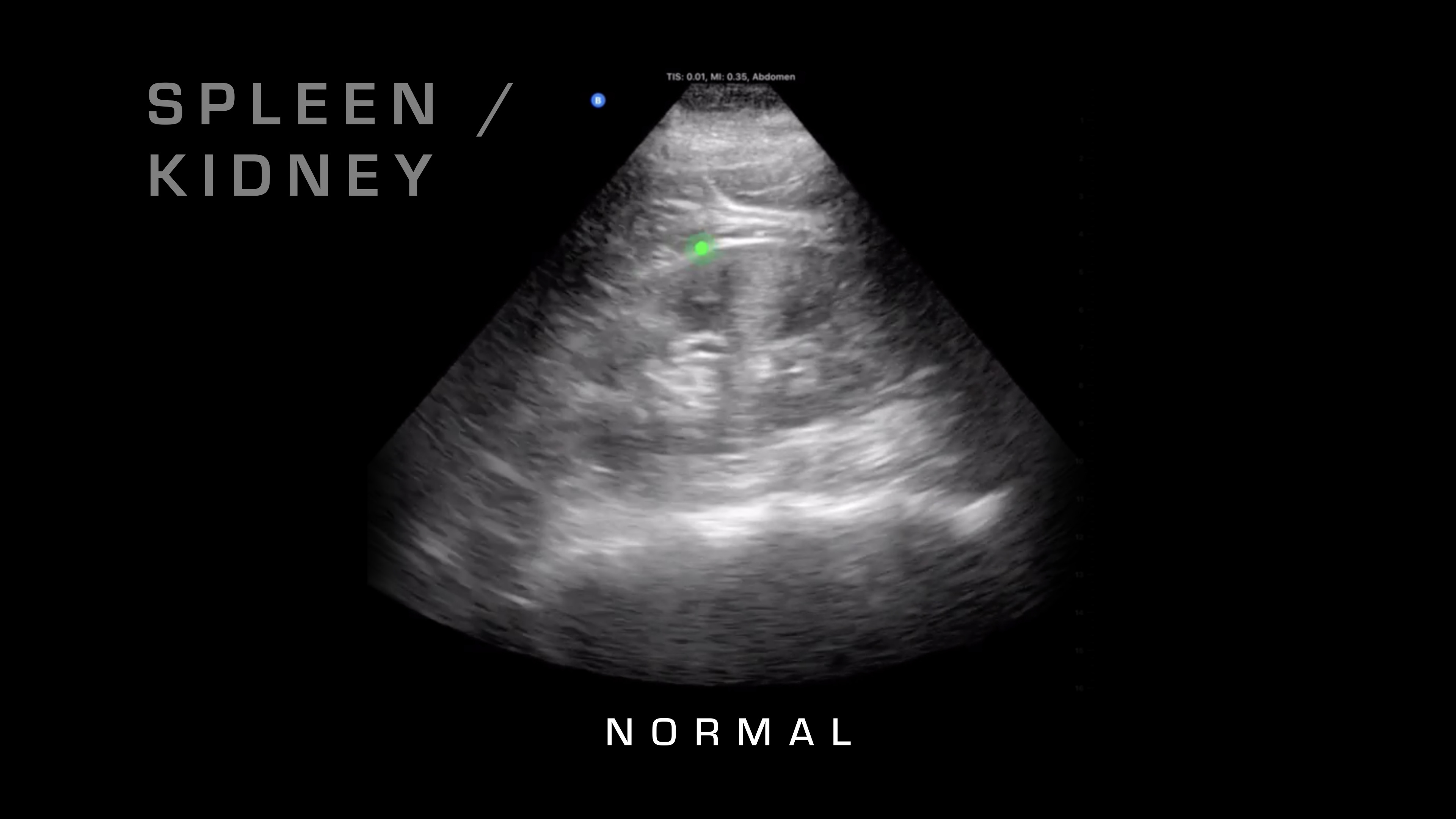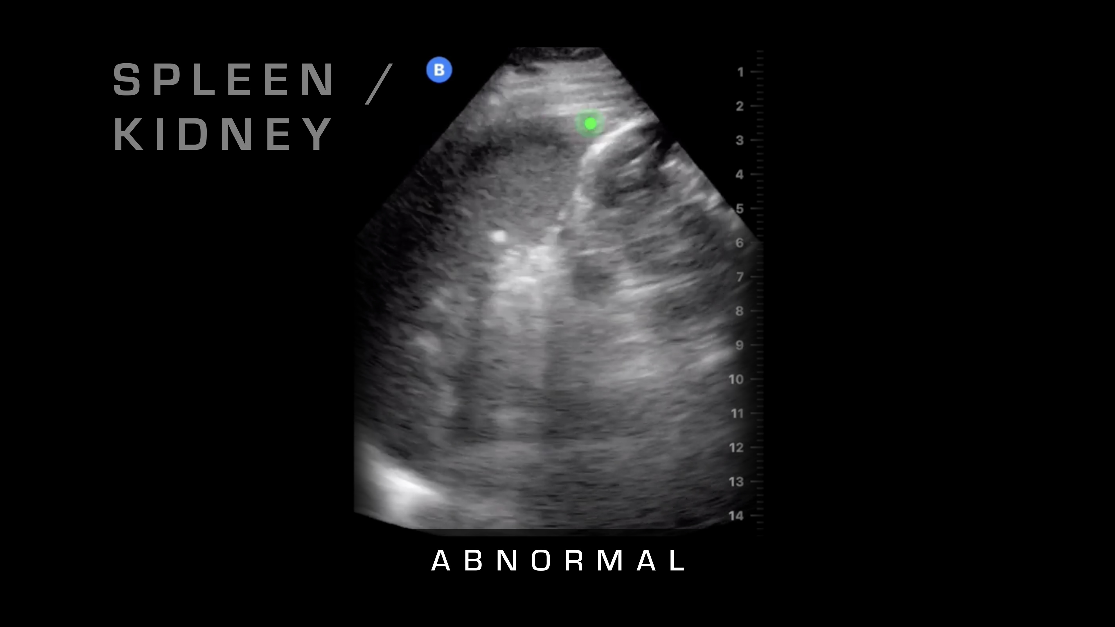 So I'll show you some normal, and then here's an abnormal one where you can see the fluid that's built up between the spleen and the kidney.